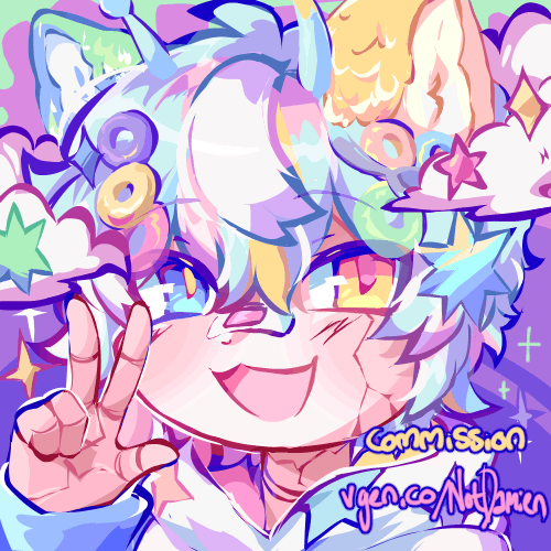 Commissions are sold mostly through Vgen ! Here ! KoFi members can get first dibs on experimental commission types, discounts, adopts, and more via my Discord !