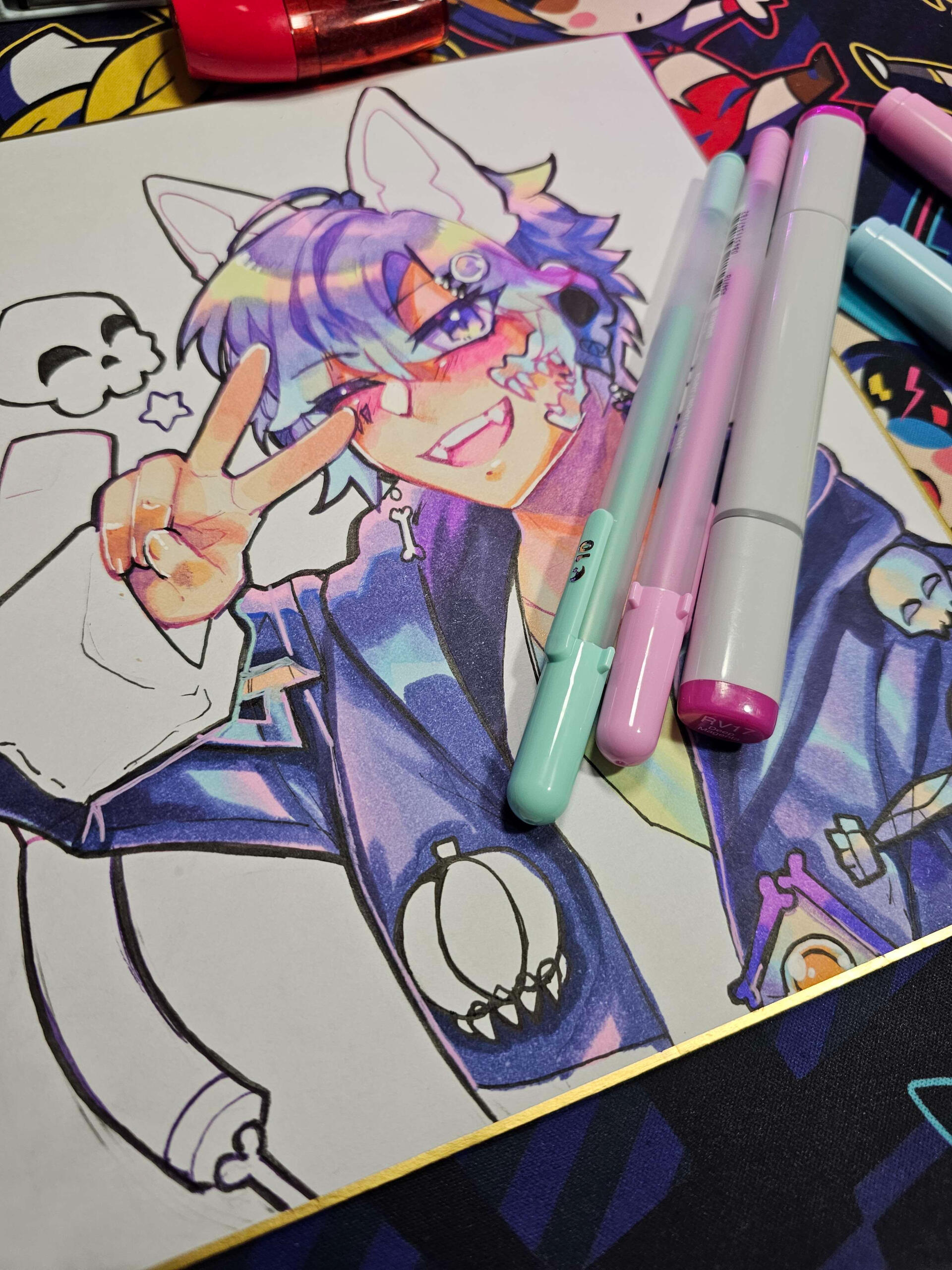 Vtuber Model Art & Rigs SOLD SEPERATELY, I only make the artwork !Traditional Art: Alcohol Markers, Acrylic Paint, Gel pens, & Watercolor.